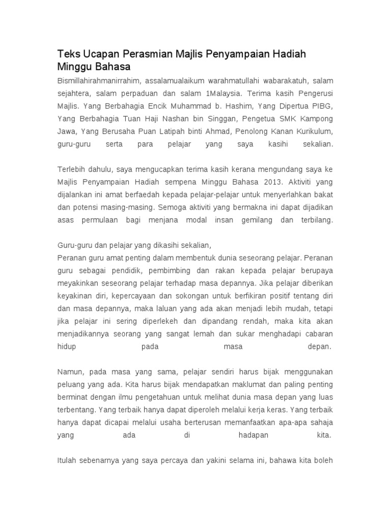 Teks Ucapan Perasmian Minggu Bahasa Pdf