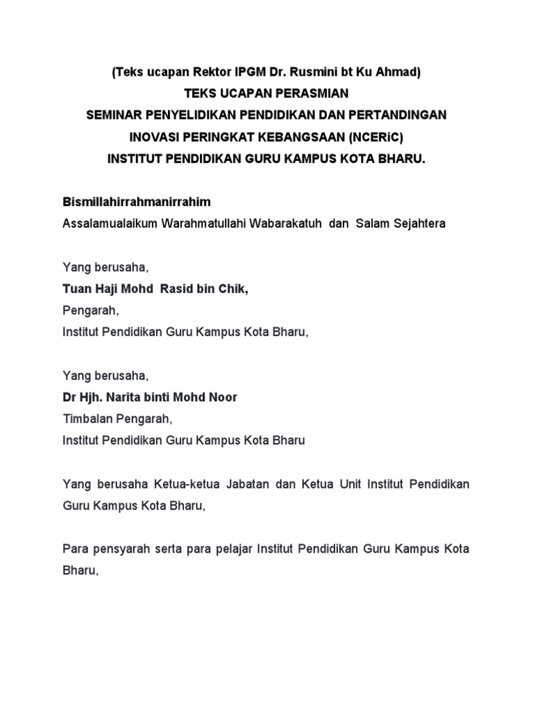 Teks Ucapan Perasmian Dalam Bahasa Inggris Ropsnadi